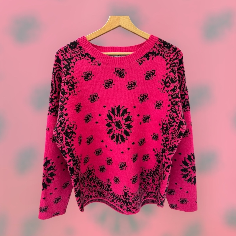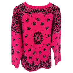 Magnifique pull aux motifs BANDANA TRES CHAUD  grâce à la laine (20%) et au cashemere (10%)!!!! Hyyyyper tendance toujours pour cet hiver 2025 ! coupe droite.