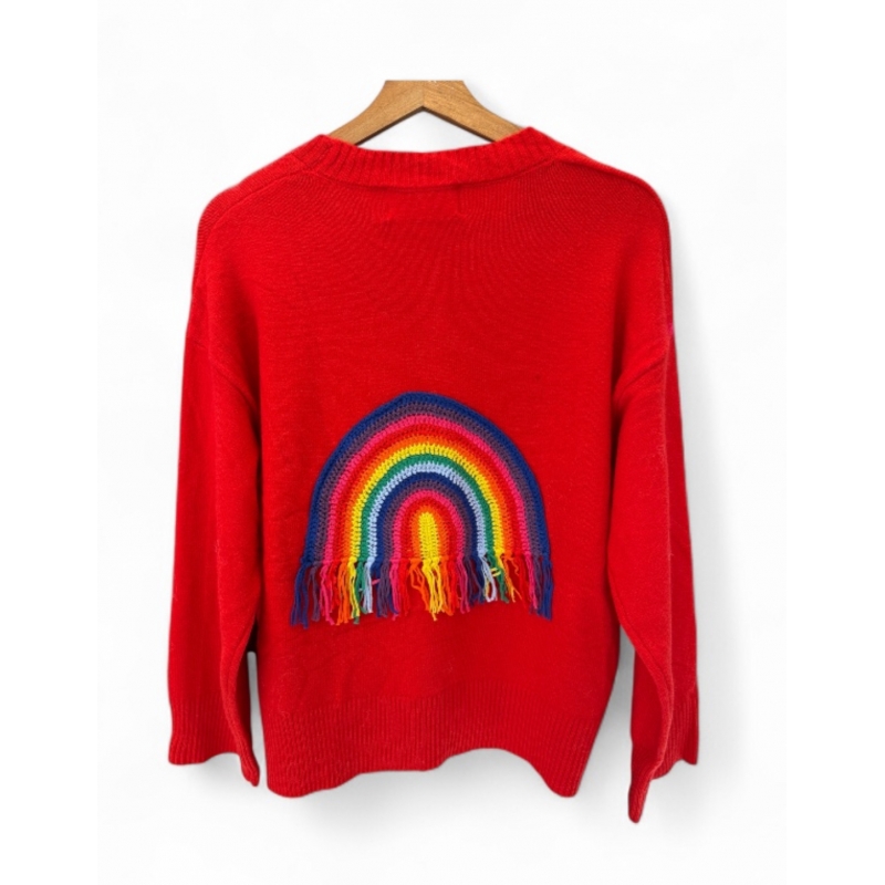 Pull brodé d'un arc en ciel multicolore; Très chaud et doux grâce au 10% de cashemere et 20% de laine, look bobo chic assuré !